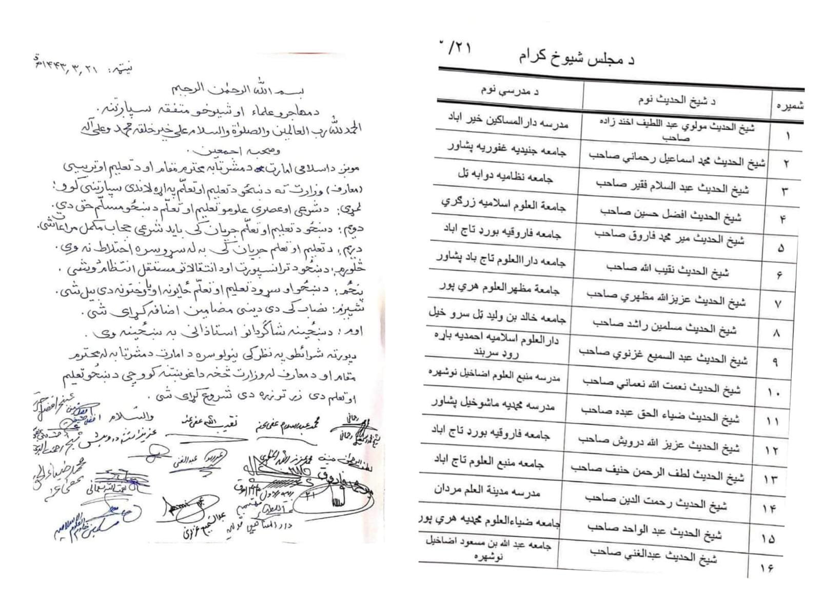 د طالبانو د لوړو زده کړو وزیر ته غبرګون؛یو شمېر طالبانو د هغو عالمانو لیستونه خپاره کړي چې د نجونو زده کړې یې روا بللې