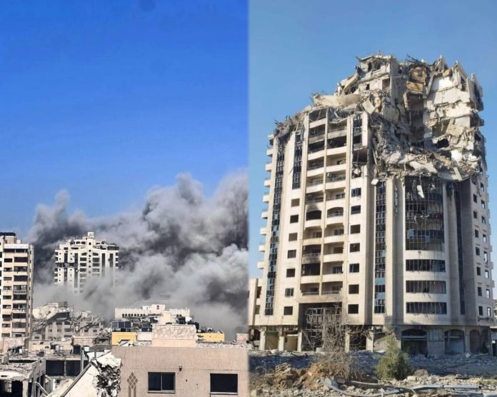 اسراییلي جګړهيي جیټ الوتکو د غزې په لوېدیځ کې یو استوګنیز برج په بشپړه توګه ونړاوه.