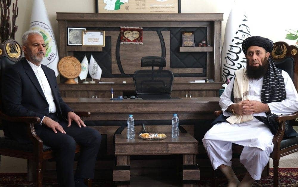 د طالبانو حکومت د کرنې، اوبولګولو او مالدارۍ وزارت معین او په کابل کې د ایران د سفارت سرپرست علي رضا بیکدلي د کرنې او مالدارۍ په برخو کې د همکاریو د پراخېدو په هدف سره ولیدل.
