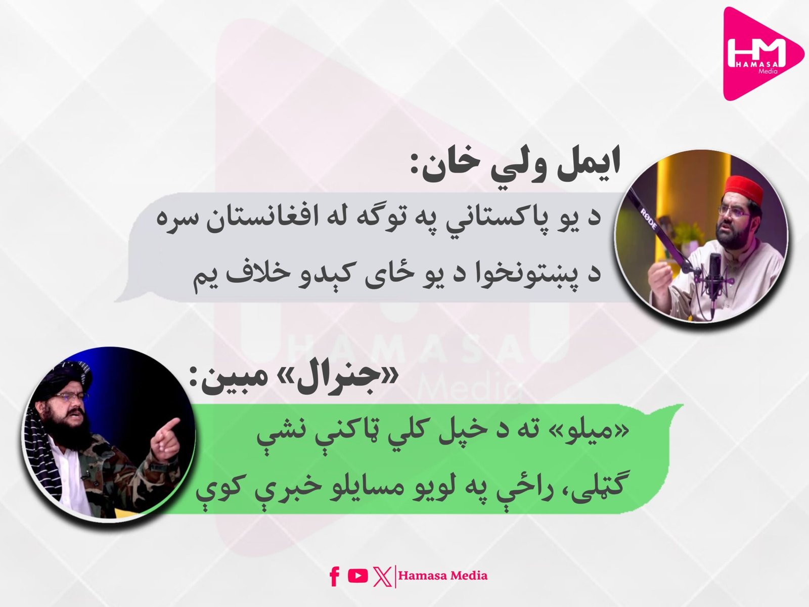 د طالبانو حکومت د کابل د امنیه قومنداني پخوانی ویاند «جنرال» مبین، ایمل ولي خان ته د “میلو” خطاب کړی.
