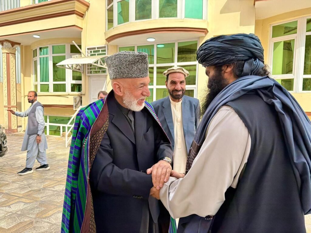 د هېواد پخواني ولسمشر حامد کرزي او یو شمېر پخوانیو دولتي چارواکو د طالبانو حکومت له کورنیو چارو وزیر خلیفه سراج‌الدین حقاني سره لیدنه کړې او د کوچني اختر مبارکي یې ورته ویلې ده.