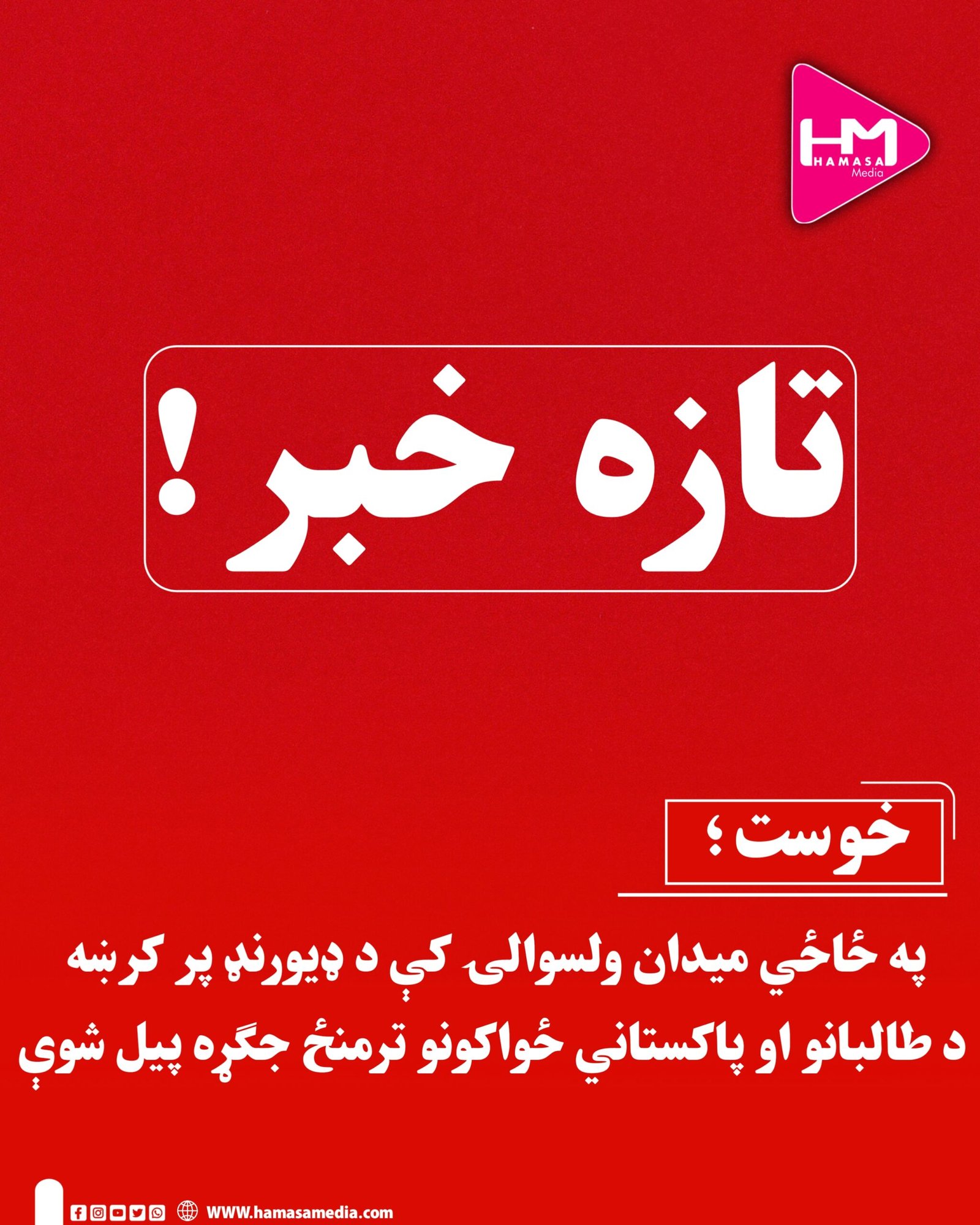 د خوست ولایت د ځاځي میدان ولسوالۍ اړوند د ډیورنډ کرښې په اوږدو کې د طالبانو او پاکستاني ځواکونو ترمنځ جګړه پیل شوې ده.