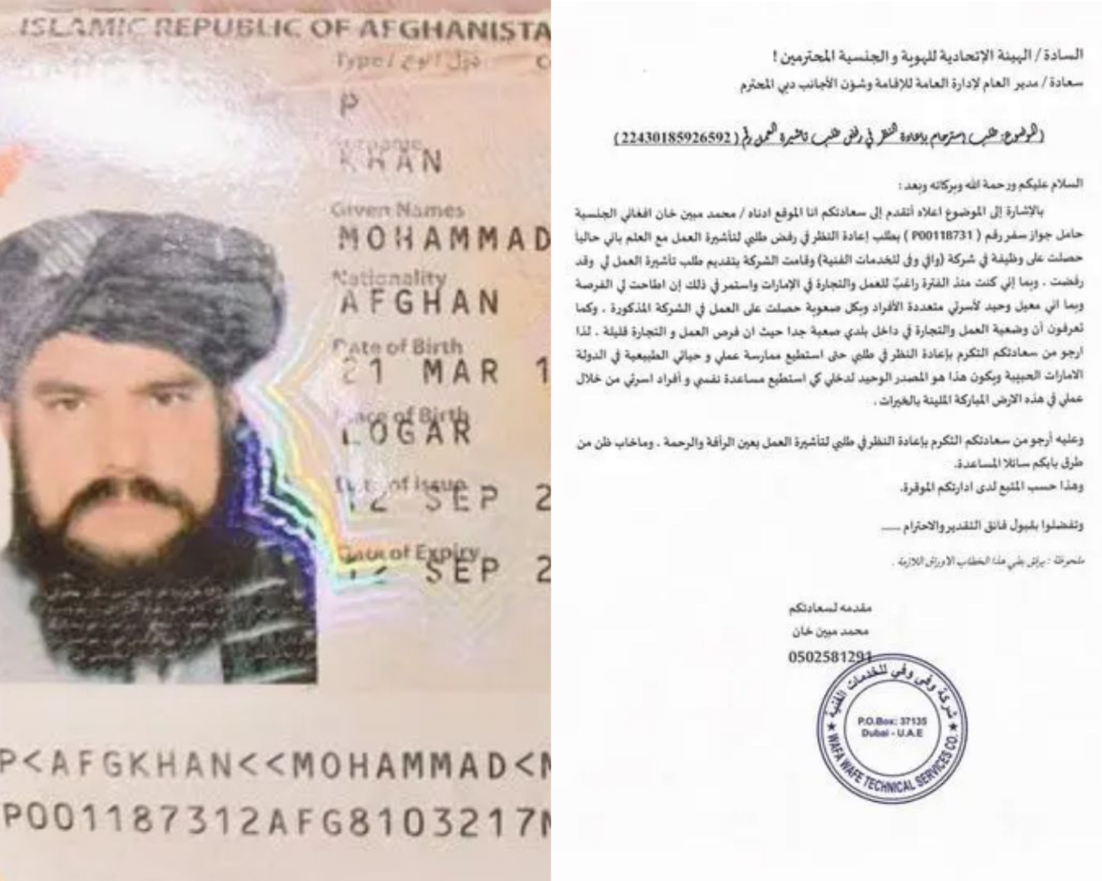 د طالبانو د کابل امنیه قوماندانۍ پخوانی ویاند چې د طالبانو حکومت په منتقد بدل شوی په اماراتو کې د کاري ویزې غوښتنه کړې وه چې د دوبۍ حکومت له لورې یې منفي ځواب ترلاسه کړی.