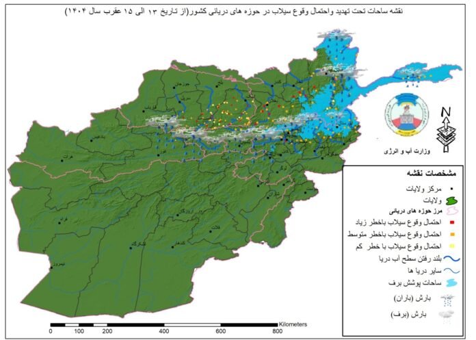 د وزارت په وینا، د عقرب له ۱۳ څخه تر ۱۵ پورې په کابل، پنجآمو سیند او د هېواد په شمالي سیمو کې د اوبو د سطحې د لوړېدو او سېلاب د راتلو احتمال شته.