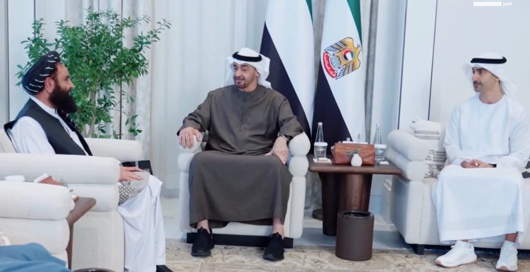 په متحده عربي اماراتو کې د طالبانو سفیر مولوي بدرالدین حقاني د کوربه هېواد د دولت رئیس شیخ محمد بن زاید آل نهیان سره کتلي.