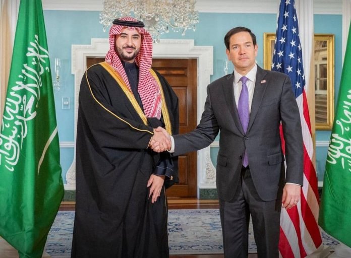 د سعودي عربستان د دفاع وزیر، شهزاده خالد بن سلمان امریکا ته د خپل سفر په ترڅ کې، د دې هېواد د بهرنیو چارو له وزیر مارکو روبیو سره کتلي.